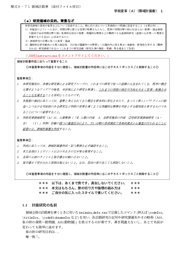文部科学省 2027(R09)年度 学術変革領域研究(A) (領域計画書) S-71 (2026年春夏応募分)