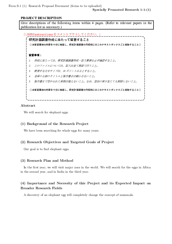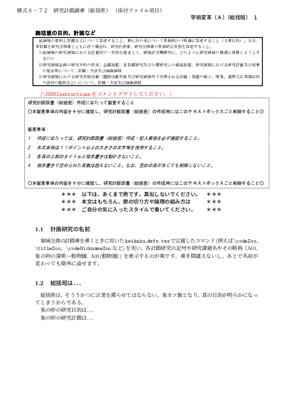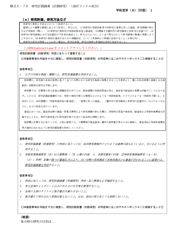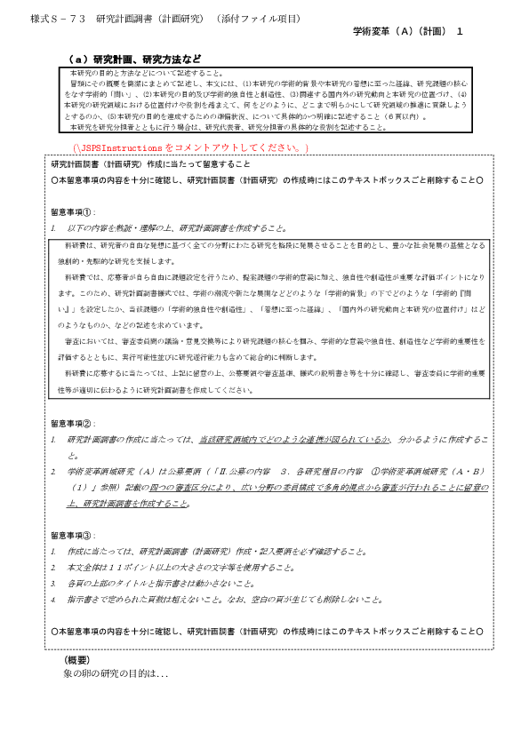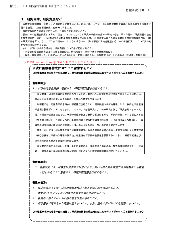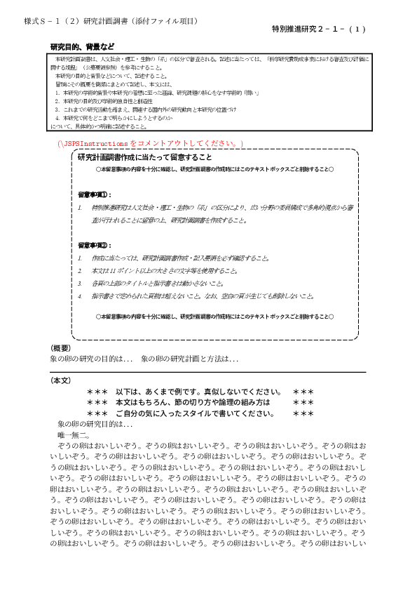 日本学術振興会 S-1 (2) 特別推進研究(新規)・日本語版その1(2026年新春応募分)