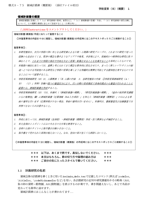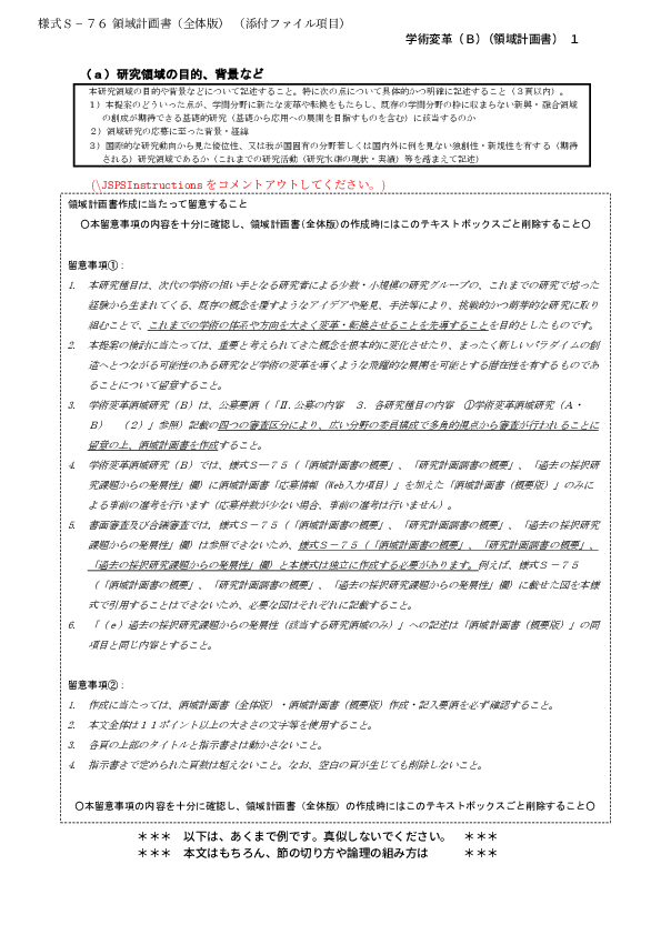 文部科学省 2027(R09)年度 学術変革領域研究(B) (領域計画書(全体版)) S-76 (2026年春夏応募分)